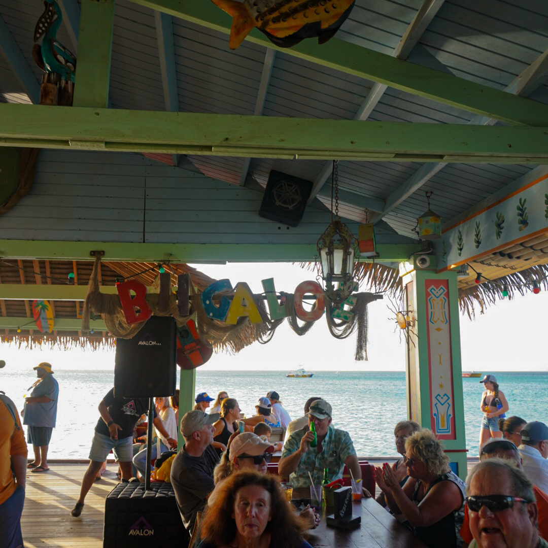 Bugaloe Beach Bar Aruba is set right over the water in Palm Beach, making it a popular lunch and afternoon spot for visitors looking for beachfront dining in Aruba. Built on a pier above the ocean, this overwater bar in Aruba offers open views where you can watch boats passing by while you eat. It’s common for guests to stop in straight from the beach, which adds to the relaxed atmosphere. There’s often live entertainment playing during the day, giving the space a fun but easygoing feel. The menu is diverse, with plenty of options ranging from casual bites to fuller meals, making it a convenient choice among Palm Beach restaurants. Bugaloe is also known for its cocktails and daily happy hour in Aruba, making it a great place to settle in for the afternoon while staying right by the water.